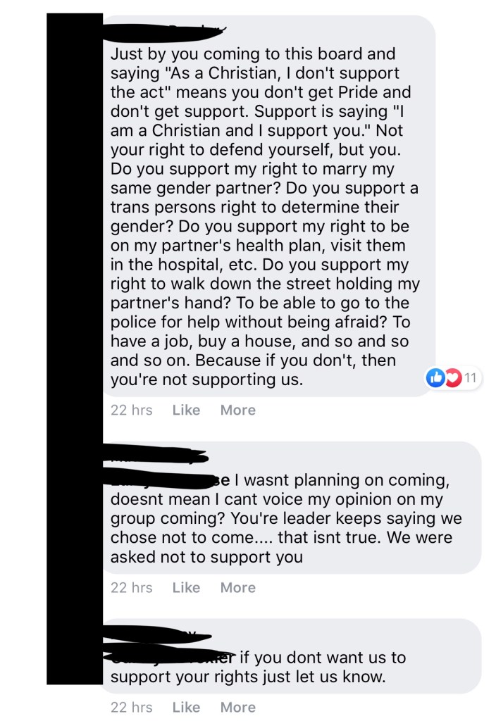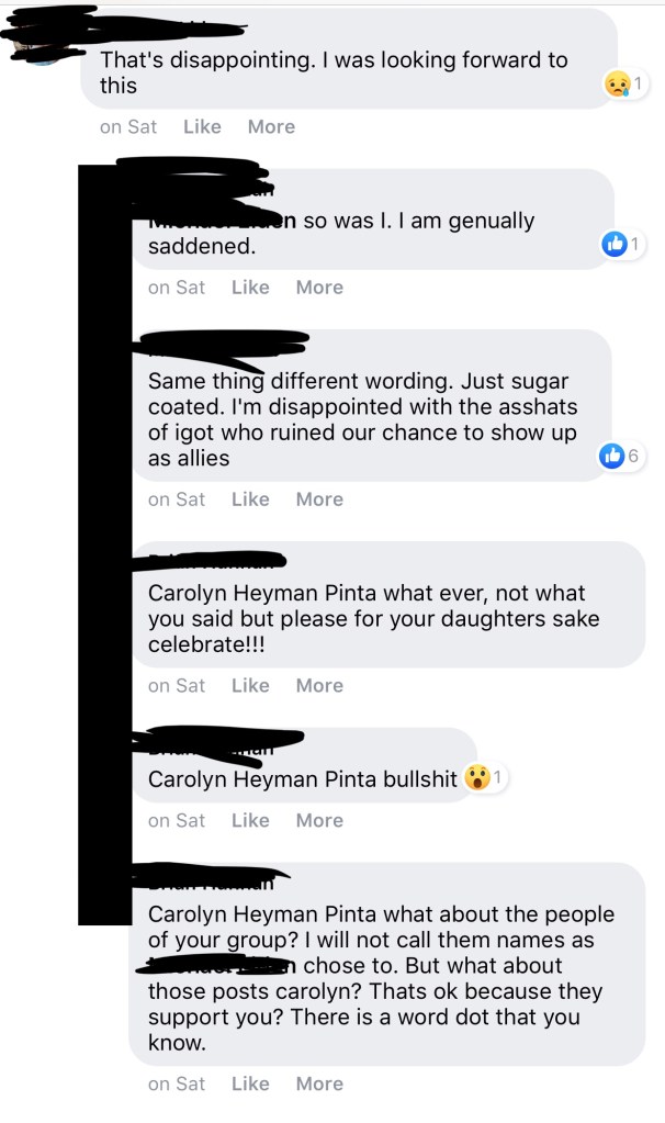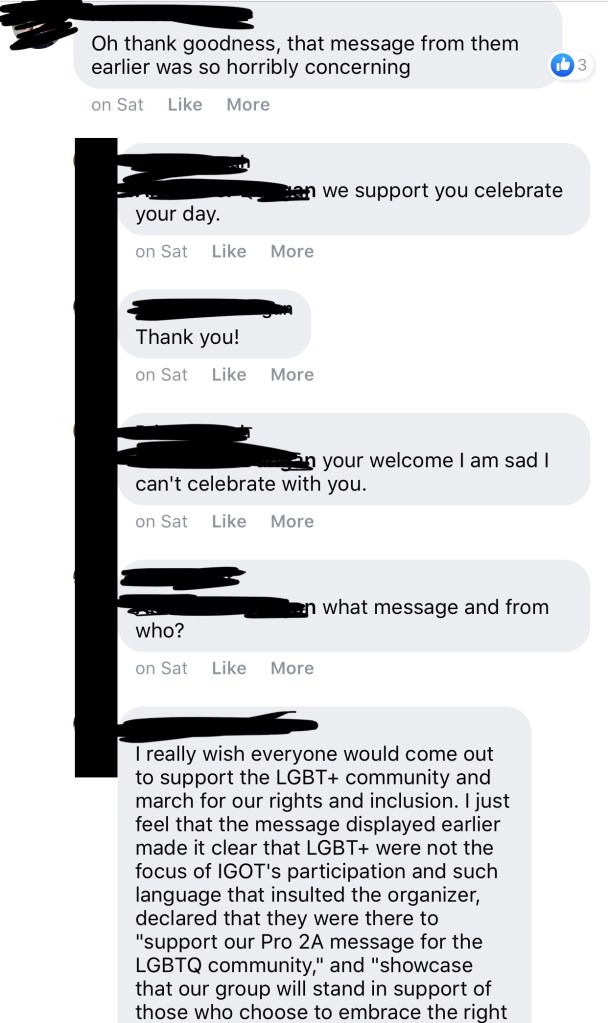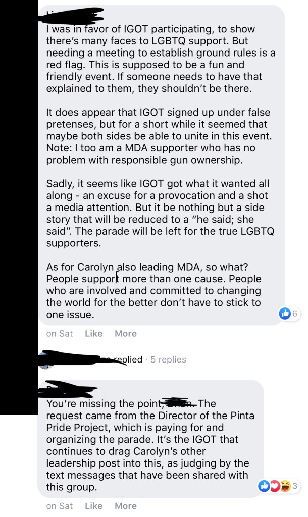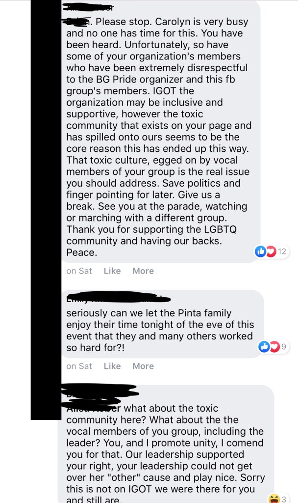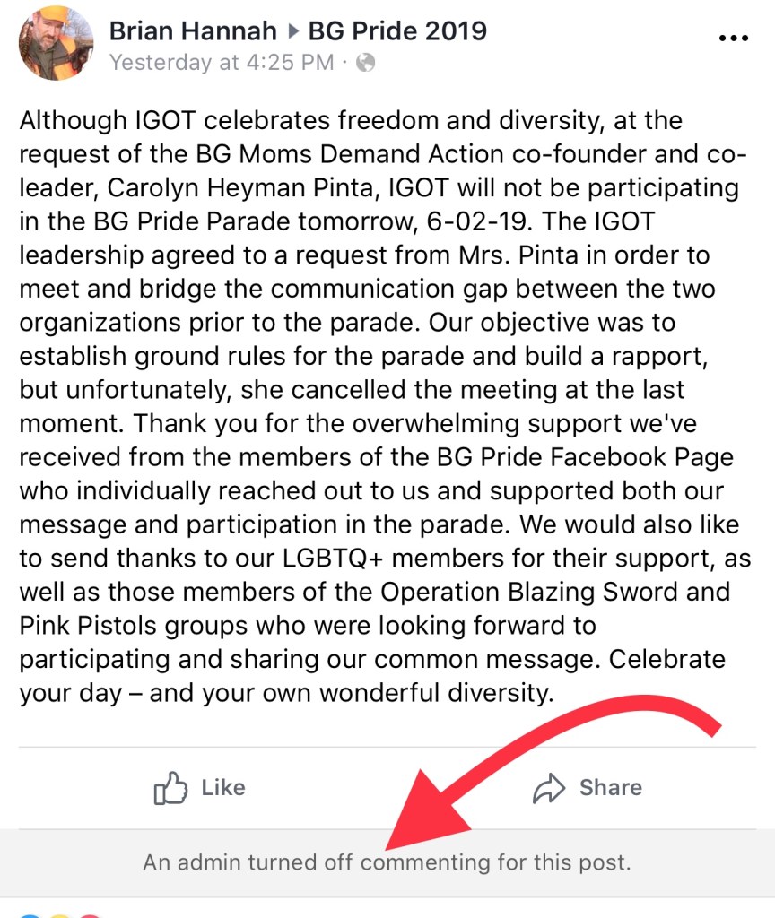 That’s right. Pinta told them not to come. Also notice that comments on the post inside the BG Pride 2019 group were turned off? Here’s what went down: