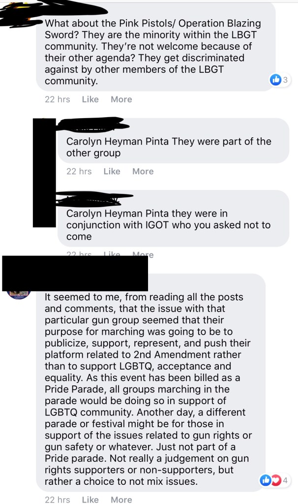So, so far we have the parade organizers disinviting a pro LGBTQ gun rights group because