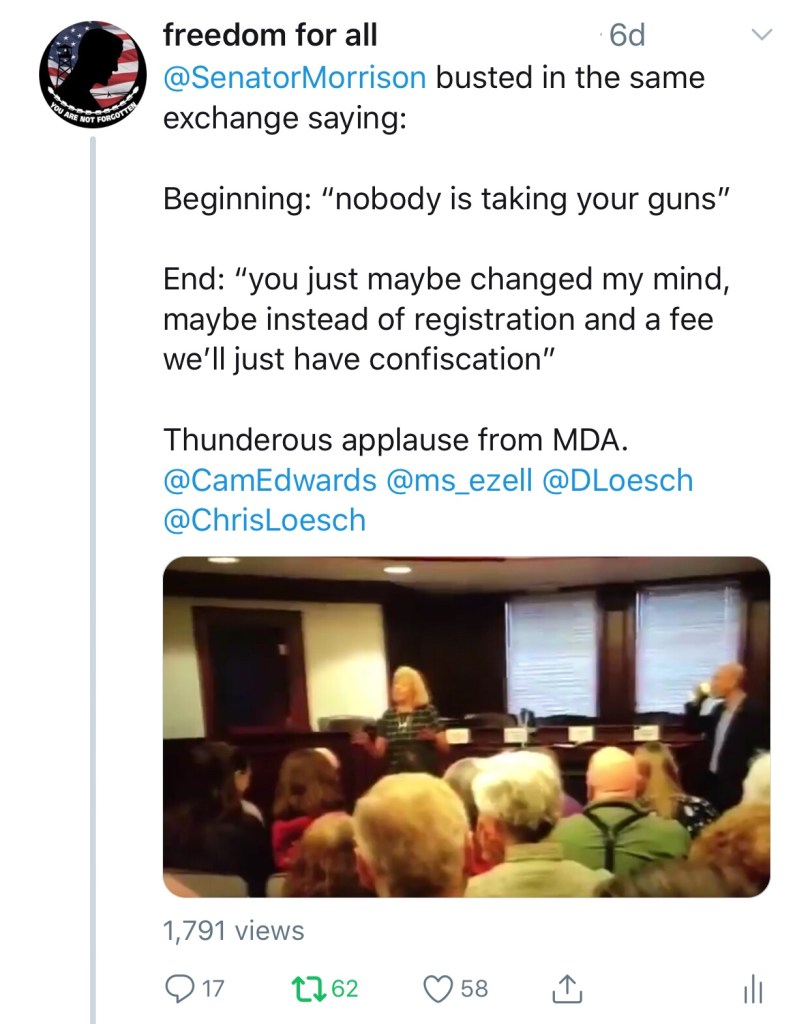 She heavily exaggerated (to the point of lying) on why the ISRA and “gun rights extremists” opposed the bills. So, with her own words, you all know she is against firearms (calling us extremists for supporting the 2nd amendment) and wants us to not “maintain our grip on guns at all cost”. Real pro-2A, lady…….
