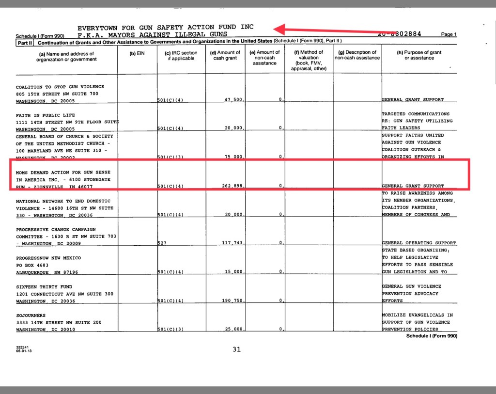 Moms Demand Action also received grants shortly after they started from Bloomberg’s Mayor’s Against Illegal Guns (another organization that had its issues because they were going after LEGALLY owned firearms).